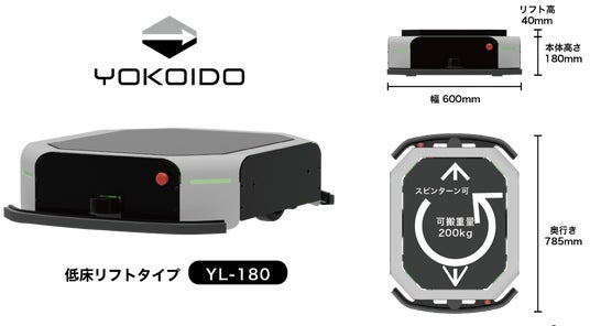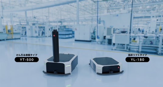 各タイプは多くの現場で使いやすい機能別で分かれており、ひとつは台車の下へ潜り込んで重量物をリフトアップして運ぶ低床型AMR「YL-180」、もうひとつはカゴ台車などと連結して運ぶ、けん引型AMR「YT-500」の2機種および、そのオプション仕様で構成。初回出荷日は8月下旬を予定しています。