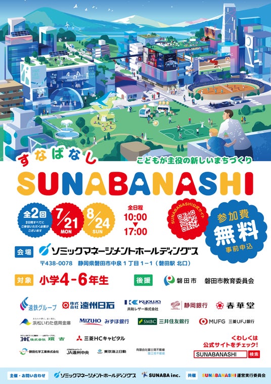 SUNABA inc.(本社:東京都渋谷区)は、株式会社ソミックマネージメントホールディングス(所在地:静岡県磐田市、以下SMHD)と共同で、2025年夏、東海地域では初開催となる「SUNABANASHI Iwata #1(以下SUNABANASHI)」を実施します。日程は、7月21日(月・祝)および8月24日(日)の2日間、会場は磐田駅前エリアおよび株式会社ソミックマネージメントホールディングスを予定しています。