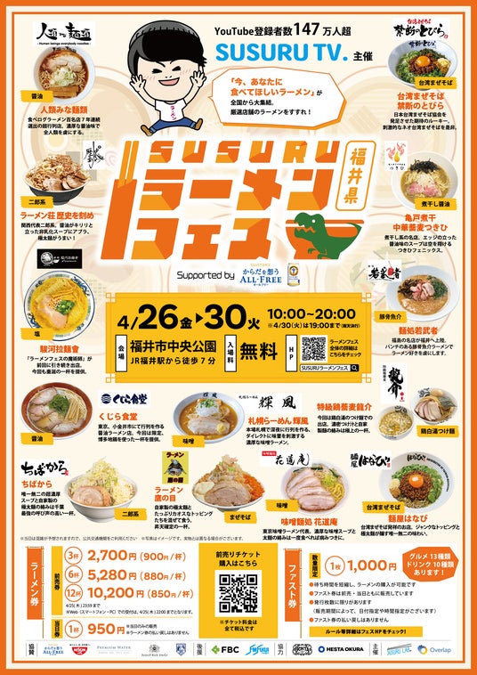 「SUSURUラーメンフェス福井 supported by サントリー からだを想うオールフリー」に出店するラーメン店を発表!