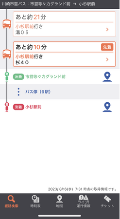 今後、各経路検索事業者がサービスの提供を開始します。なお、先行して8月28日からは、iOS/Android アプリ「乗換案内」(ジョルダン株式会社 本社:東京都新宿区)において、川崎鶴見臨港バスと川崎市バスのリアルタイム運行情報を確認できるようになります。その他のバス事業者及び経路検索アプリ等につきましては、準備でき次第、改めてお知らせいたします。
