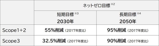 ※2 Scope1+2の排出量を95%削減、Scope3の排出量を90%削減、残余排出量は中和化