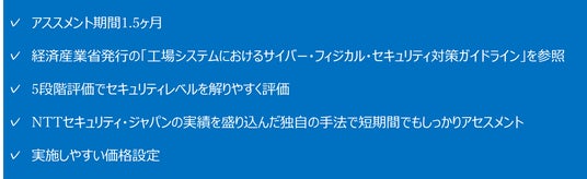 NTTセキュリティ・ジャパン株式会社(本社:東京都千代田区、代表取締役社長:関根 太郎、以下「NTTセキュリティ・ジャパン」)は工場のセキュリティの現状を短期間で評価することができるアセスメントサービス「OTセキュリティ アセスメントQuick」のサービスの提供を2024年12月24日より開始いたします。