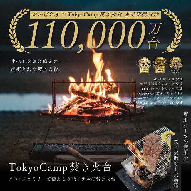 合同会社DRive(本社:大阪府箕面市、代表:吉川了)が運営するキャンプブランド『TokyoCamp(トーキョーキャンプ』の主力製品「TokyoCamp焚き火台」がブランド発足から約3年で累計販売台数11万台を突破しました。