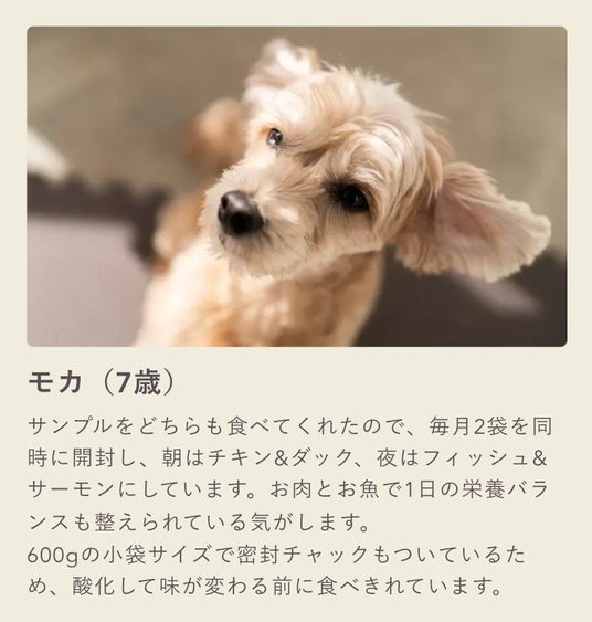 この2つのメリットを両方活かせるよう、製造企画段階で栄養士がフレッシュとドライの比率を調整し、食いつきと栄養素の両面に考慮しています。