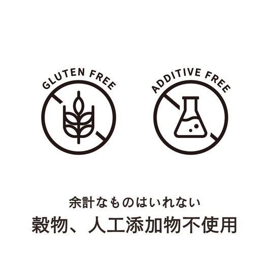 愛犬の身体に負担をかける穀物・人工添加物(保存料、着色料、香料)を一切使用していません。