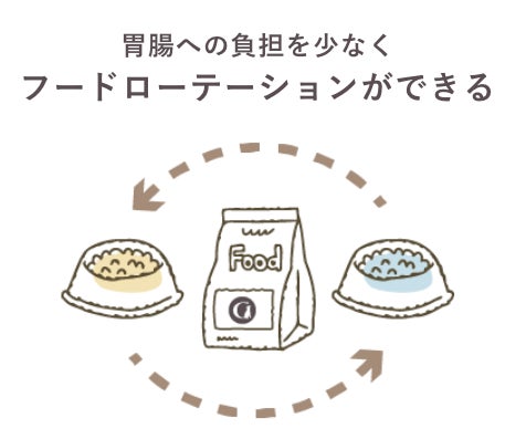 つまり、フードローテーションは犬の健康維持に有効ですが、刺激や負担は最小限にすることが、愛犬のカラダを考えると重要なのです。