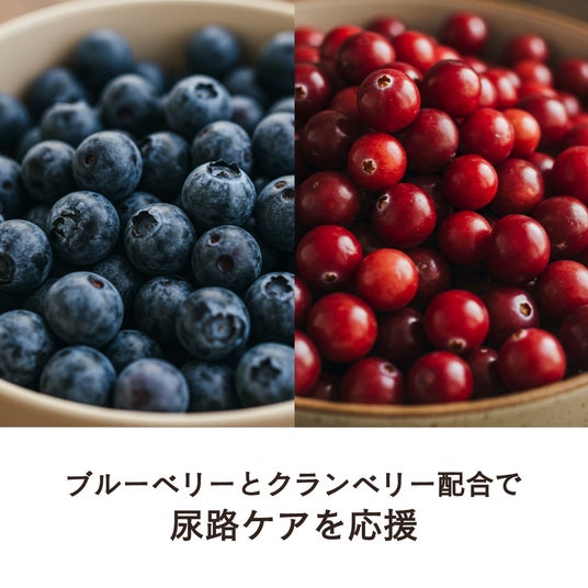 尿路系の健康維持に役立つと言われているクランベリーやブルーベリーを配合しました。