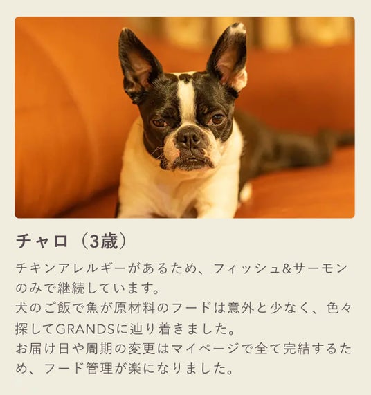 GRANDSプレミアムドッグフードはAAFCO総合栄養食基準、FEDIAFの製造ガイドライン基準を満たしたフランス産のドッグフードです。