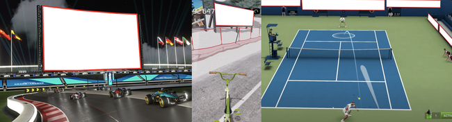 「インゲーム広告」とは、ゲーム空間内のオブジェクトに表示される、ゲームコンテンツと一体化した広告枠(例:下記画像内の赤枠)に掲載される広告です。従来のアプリ広告のように、プレイ画面に覆い被さるポップアップ画面で訴求するものと異なり、プレイを阻害することはありません。