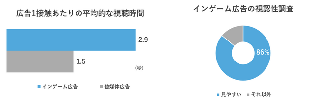 2.ゲームは「プレイ画面を注視する」というコンテンツの性質があるため、ゲーム空間に掲載される「インゲーム広告」は視認性が高く、広告視聴時間が長くなる