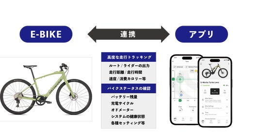 E-BIKEと携帯端末をBluetoothで接続し、専用のアプリケーションを使用して