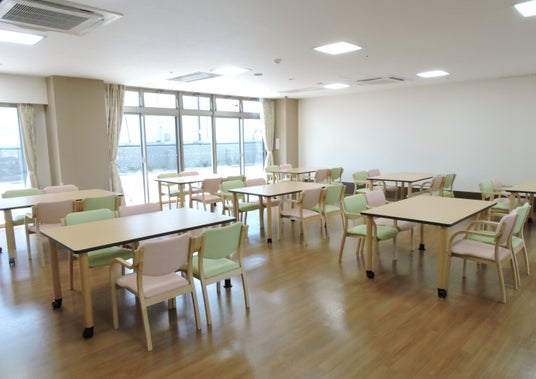 共用設備/食堂兼機能訓練室、浴室(一般浴・機械浴・個浴)、ヘルパーステーション、健康管理室、談話コーナー、理美容室、相談室、事務室、トイレ、エレベーター