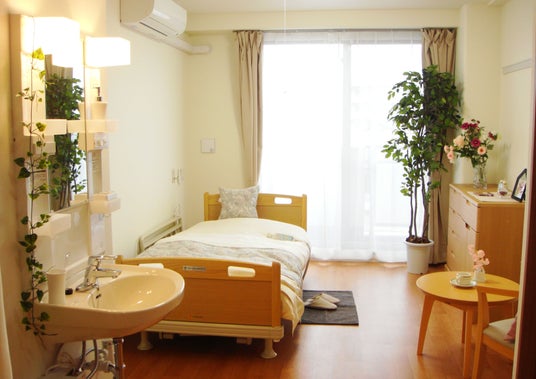 全てのお部屋が、お一人おひとりのプライバシーに配慮した個室(ワンルームタイプ・18.00平方メートル )で、緊急コールやスプリンクラーといった高齢者の安全をお守りする設備はもちろん、介護専用電動ベッドや手元で温水を操作できる車いす対応の洗面台をはじめとする、快適な生活を実現するためのさまざまな設備を整えています。