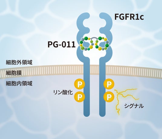 FGF2代替ペプチド(PG-011)は、FGFR1c受容体に結合する環状ペプチドで構成されるペプチドです。FGFR1cに対する結合を介して、その活性化を誘導し、各種細胞に対する活性を示します(図1)。