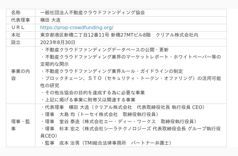 一般社団法人不動産クラウドファンディング協会(代表理事:横田 大造 以下「当協会」)は2024年12月10日、衆議院第二議員会館にて統合記念式典(以下「本式典」)を実施しました。