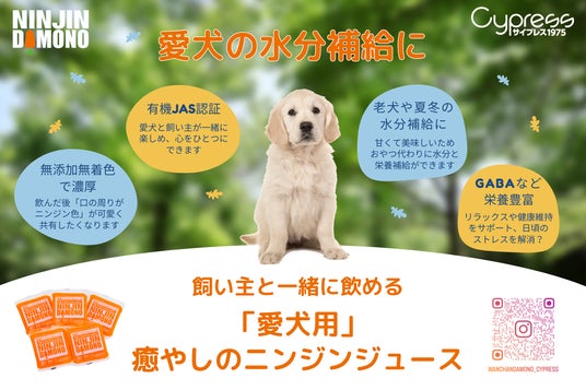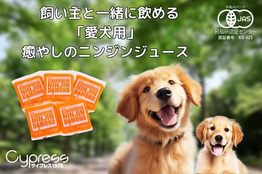飼い主と一緒に飲める「愛犬用」癒やしのニンジンジュース ~愛犬の毎日の栄養補給、夏冬の水分補給をサポート~