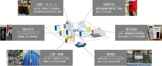 EV重機の普及が始まり、電動工具やバッテリー駆動の機器も幅広く使用されています。これらのバッテリーに起因する火災リスク軽減への重要な安全対策ツールとして、その活用が期待されています。