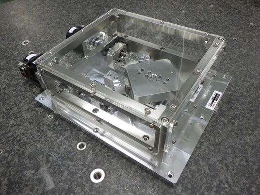 カスタイマイズ例の一つである全周カバー付特殊仕様では、ステージとその可動域のみをカバーで覆うことにより、カバー内の真空環境も実現可能です。また、モータが隔壁外に設置されることより、モータ起因のアウトガス等の悪影響も回避できる仕様となっています。