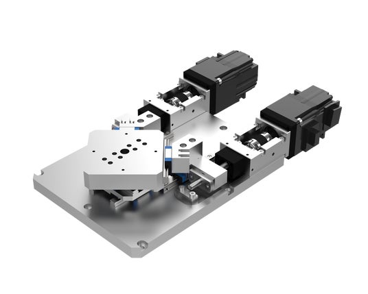 『パラレルドライブステージ PD…S』は、2軸並列に配置したボールねじアクチュエータの直線運動をXY運動に変換する構造を備えることで低断面化を実現した精密位置決めXYステージです。