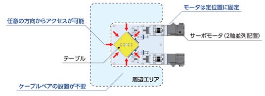 パラレルドライブステージ PD…S、ステージ周辺に可動するモータやケーブル類が無く、作業エリアを限定しない自由度の高い装置設計が可能!!経済性と環境負荷低減にも貢献!!