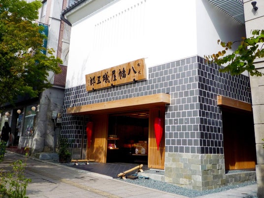 長野県立美術館から歩いておよそ徒歩10分に位置する八幡屋礒五郎 本店。善光寺のお膝元、大門町に位置する本店は、八幡屋礒五郎の280余年の歴史を伝える発信基地。七代・栄助が昭和27年にここに拠点を構え、平成20年に全面改装を行いました。七味缶をはじめとする全商品のラインナップを販売するほか、お客様のお好みに合わせた七味の調合サービス《カスタムブレンド》を行っております。