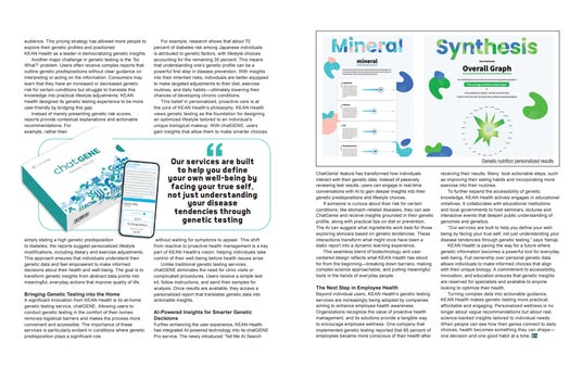 KEAN Health社は、「遺伝子が生活者にとってより身近になる社会を創っていく」というビジョンのもと、400項目以上の解析を行う「chatGENE」シリーズを展開。専門知識不要で自分の体質や健康リスクを把握できるレポート設計と手頃な価格設定や、検査レポート内に日本初※のAI検索機能を搭載した点が高く評価された。※一般消費者向け遺伝子検査サービスにおいて。2025年1月時点。KEAN Health社調べ。
