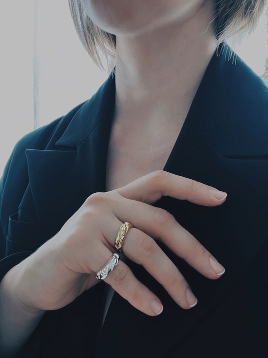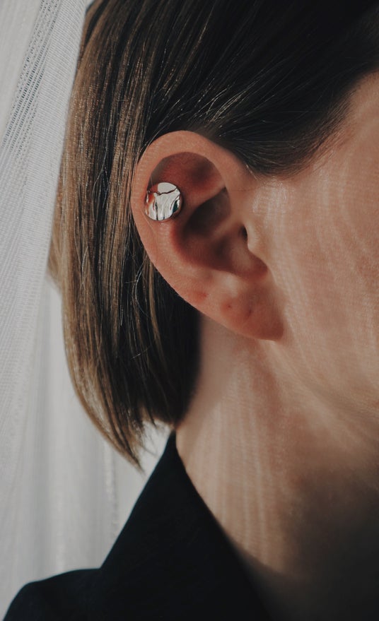 リングとしてだけでなく、イヤカフとしてもお使いいただけます。溶岩をイメージしたシンプルなデザインは、