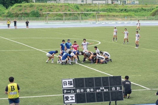 日本福祉大学ラグビー部 対 愛知工業大学ラグビー部のデモンストレーションマッチの様子