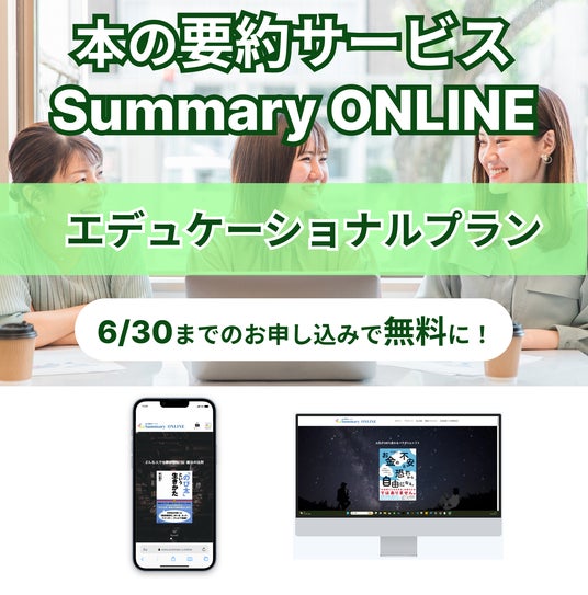 サマリーオンラインは、あらゆる書籍を5~10分で読める長さに要約するサブスクリプションサービスで、要約を読んで気になる本を手に取る「新しい読書のかたち」をお届けしています。