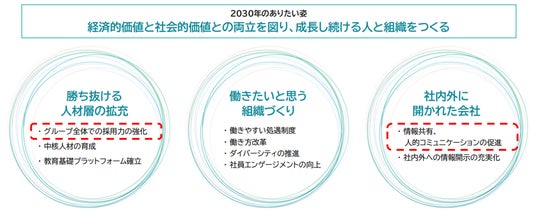 図:人的資本の強化における2030年のありたい姿と3つの方針