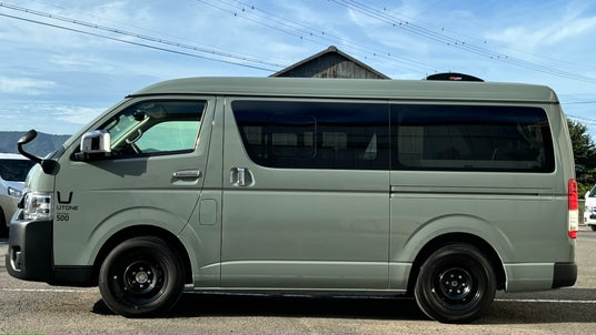 共通 ベースカー:TOYOTAハイエースワイドミドルバンスーパーGL、6人乗車5人就寝(大人2+子供3)、8ナンバー、サイズ:4840mm×1880mm×2105mm、燃料タンク70L、冷蔵庫40L、清水・排水各10L、コンビネーションシンク+コンロ、リアスピーカー、リアシート(バタフライシート)、ロングスライドレール、テーブル、2段ベッドマット、天井装飾+LEDダウンライト、LEDランプ6か所、12Vソケット、他