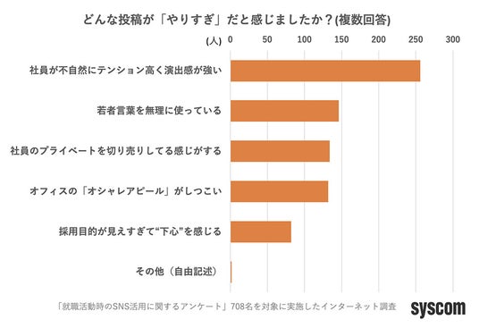 採用広報においてSNSは欠かせない存在となっている一方で、狙いすぎて投稿が「やりすぎ」「無理している」とネガティブに受け止められているケースも少なくないようです。