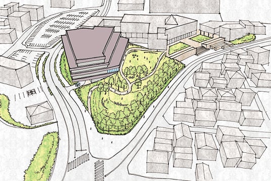 この複合施設には、建物の老朽化が進んでいる「社会福祉センター(春日市社会福祉協議会)」や「老人福祉センター『ナギの木苑』(温浴施設あり)」をはじめ、「男女共同参画・消費生活センター『じょなさん』」、「いきいきプラザ」内の「いきいきルーム」および「西出張所」を移転・集約することとしています。また、交流スペースやカフェ、コンビニエンスストアなども整備することで、既存のスポーツ・文化施設との相互交流を図り、市民の憩いの場として賑わいの向上を図ります。複合施設の1階部分はバスセンターとすることで、コミュニティバスやよいの利用により複合施設へ直接アクセスできる構造とします。