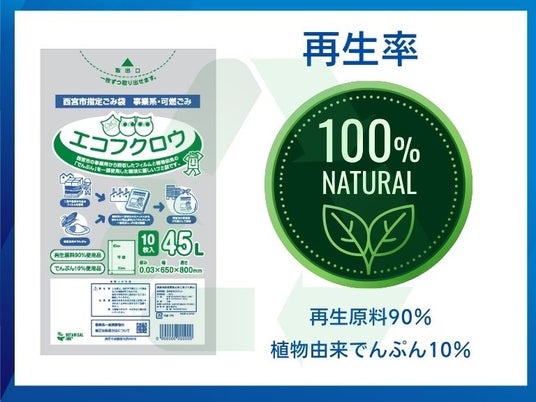 両社は、西宮市指定事業系ゴミ袋として、環境に優しいゴミ袋「エコフクロウ」を共同開発しました。この「エコフクロウ」は、西宮市等の事業所から回収されたフィルムと植物由来の「でんぷん」を使用したゴミ袋です