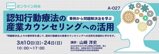 3月10日、24日に、仙台白百合女子大学心理福祉学科教授の山崎 洋史氏による「認知行動療法の産業カウンセリングへの活用~事例から問題解決法を学ぶ~」をオンラインで開催いたします。