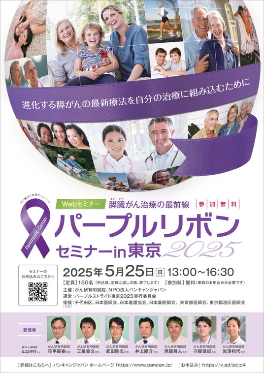 難治性がんの筆頭にあげられる「すい臓がん」ですが、がんに伴うゲノム変異や、化学療法、ロボット手術を含む手術法など、めざましい進歩がみられます。今回は 講師に、すい臓がんの症例数が国内トップクラスのがん研有明病院の先生方をお招きし、早期発見と最新の診断技術」「ゲノム医療と化学療法」「進化する外科療法」「食事と栄養」など、すい臓がんの注目のトピックの最新情報を解説いただきます。また、すい臓がんの経験者(サバイバー)をゲストに、患者の視点からの体験談など、多角的に病気を俯瞰できる充実したプログラムとなっています。主催は がん研有明病院、NPO法人パンキャンジャパン。千代田区、日本医師会、日本看護協会、東京都医師会、東京都看護協会、日本薬剤師会、東京都港区医師会などの後援で開催いたします。