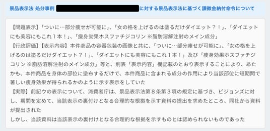 「その他商品・役務」では、特定の業界ガイドラインを参照するのではなく、消費者庁が公表している景品表示法上の過去処分事例等をもとに、類似事例を参照しながら分析を行います。