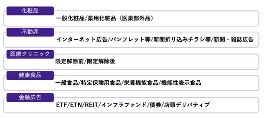 このたびad-visでは、より幅広い広告実務への対応を実現するため、「その他商品・役務」カテゴリを新設し、全業界の広告表示チェックに対応いたしました。あわせて、「エステ」「OTC医薬品」を重点カテゴリに追加し、広告上の論点やリスクが生じやすい領域への対応を拡充いたしました。