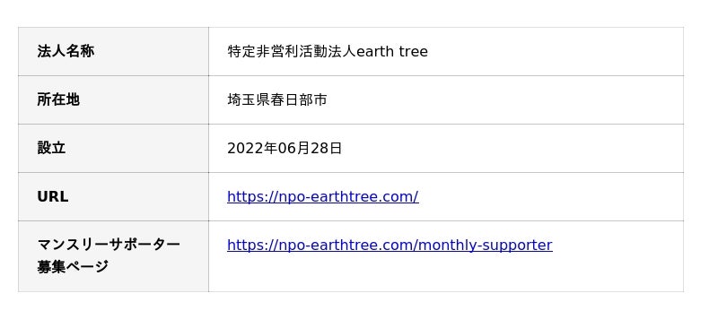 NPO法人earth treeについて