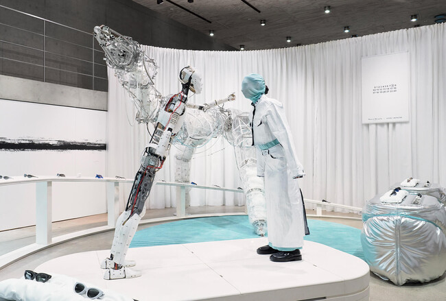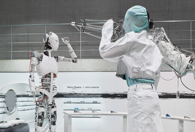 今回のポップアップストアの一番の特徴は、アバンギャルドとフューチャリズム美学の結合を空間に解きほぐしたことだ。二つのブランドのアイデンティティの出会いが強烈に表現され、ロボットと人間で構成された一組のダンサーは、まるで交感するようなエレガントな動きで、二つの存在の曖昧な境界を表現している。