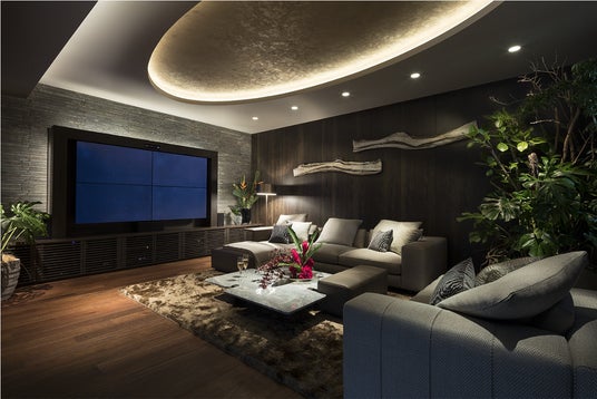 「いってきます」の一声で、家中の照明、テレビ、スピーカーがOFFになり、カーテンも閉まります。「リビングを映画館に」とスマートスピーカーに話しかければ、照明やスピーカー、テレビが一斉にシアターモードへ切り替わります。