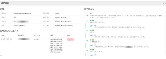 <管理ダッシュボード - 通話詳細>