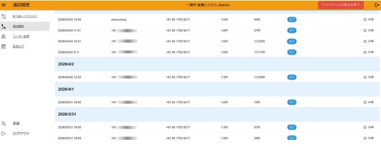 <管理ダッシュボード - 通話履歴>
