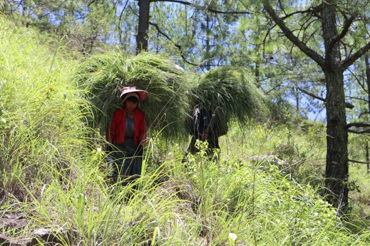 ヒマラヤに”自生”するレモングラスを手作業で収穫している