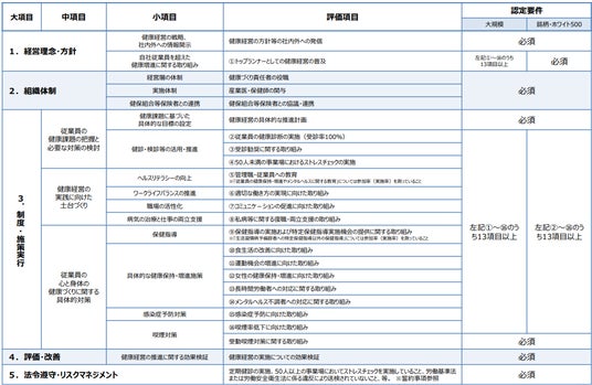出演:経済産業省「健康経営の推進について」、健康経営銘柄2022選定及び健康経営優良法人2022(大規模法人部門)認定要件