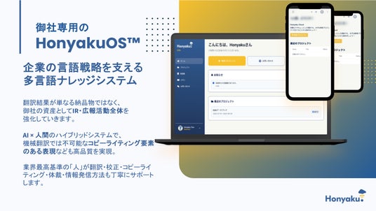 - 共同提案・クロスセルによる顧客価値の最大化両社はそれぞれの顧客基盤を活かし、グローバル展開を志す日本企業に対して、戦略コンサルティングとHonyakuOSを組み合わせたソリューションを共同で提案してまいります。