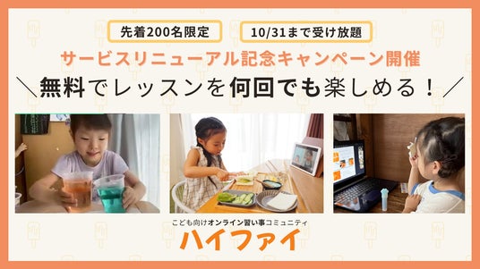 8月のサービスリニューアルが大好評!これを記念して、こどもオンライン習い事「ハイファイ」が今だけ無料で全てのレッスン受け放題になる特別キャンペーンを実施中!