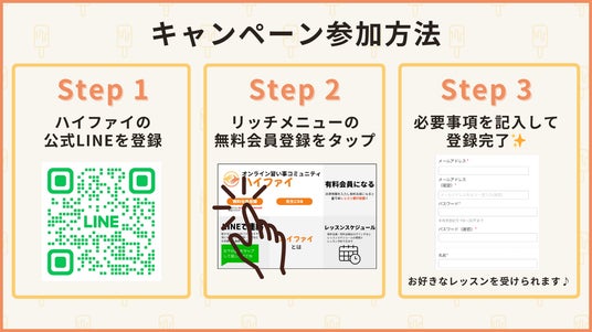 通常、無料会員は月2回までのレッスンが受講可能ですが、このキャンペーン期間中は、わずか1分で完結する無料会員登録だけで全レッスンが何度でも受け放題!