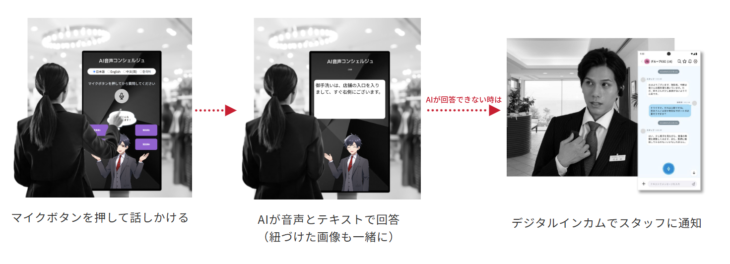 「RICOH Digital Signage AI音声コンシェルジュ」 インカム連携イメージ