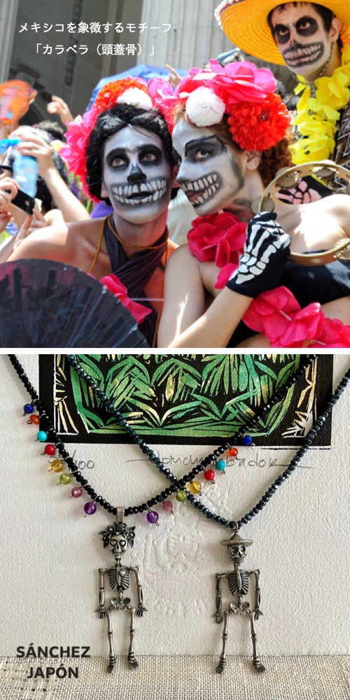 カラベラ(頭蓋骨)モチーフは、メキシコ人にとって身近で大切な存在であり、死と生まれ変わりの象徴